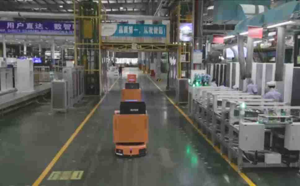 为车载冰箱物流配送打造的智能解决方案,,包含产中物流通过潜伏举升AMR搬运至线边,,产后成品物流智能仓储,,,流程包含产中物流智能齐套入库,,,线边安灯叫料AMR智能配送至线边,,,成品入库、、、、出库,,,,通过无人堆高车机器人,,,,智能仓储管理替代人工作业管理,,,,实现更高存储、、、更高效率、、、、更具柔性化的解决方案。。。。